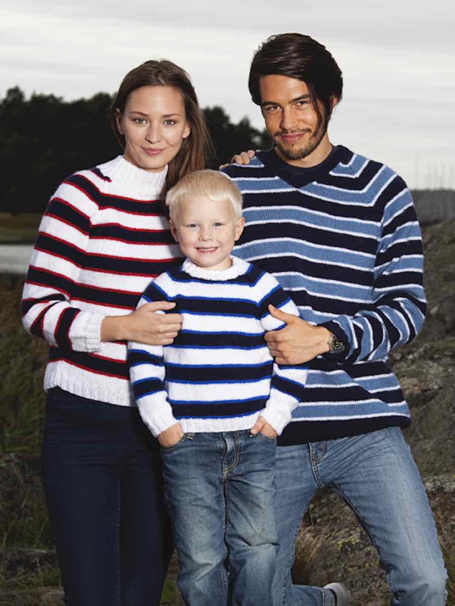 Randig raglantröja stickas i slätstickning med resårkanter. Fram- och bakstycke samt ärmar formas med raglanminskningar. Delarna sys ihop och halskant stickas i resår.