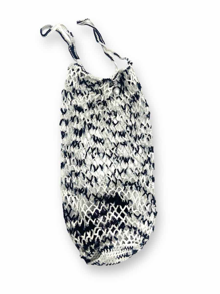 Virkad kasse som man rullar ihop till en liten boll som göms i botten av kassen.