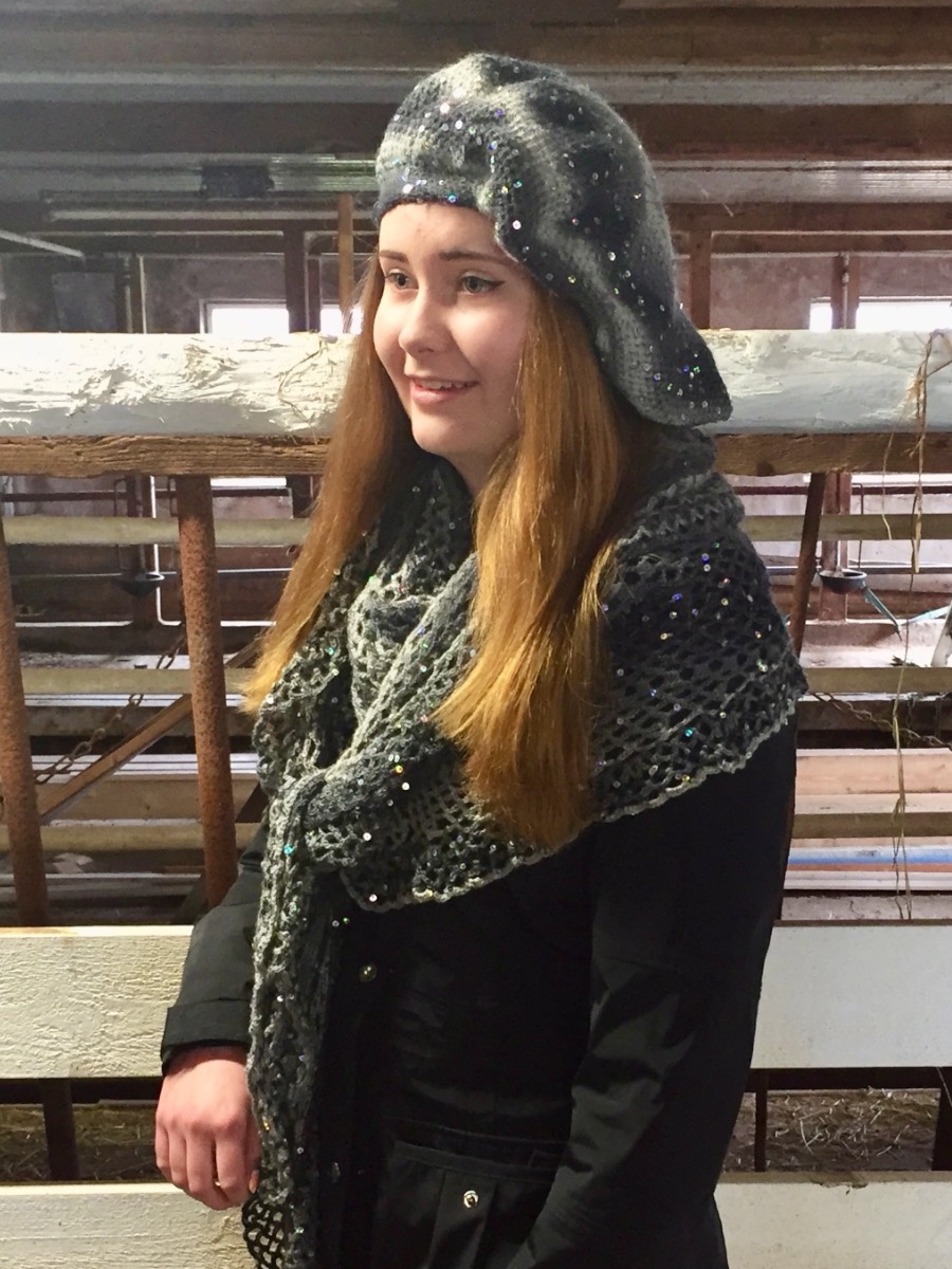 (55 % Ull, 38% Akryl, 7% Paljett / 55% Metalliserad polyester, 45% Polyamid)