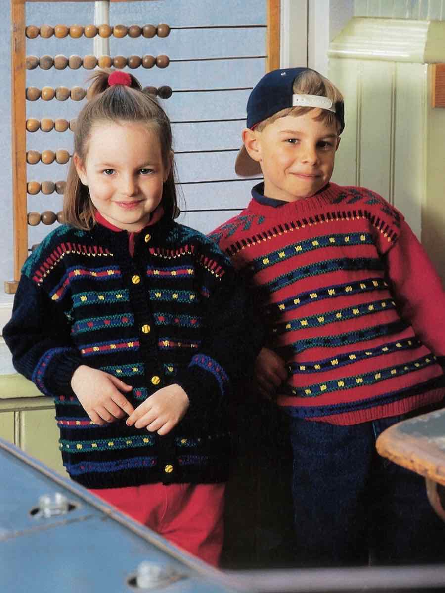 Tröjorna är stickad i delar nerifrån och upp. Slätstickad med färgglada ränder.