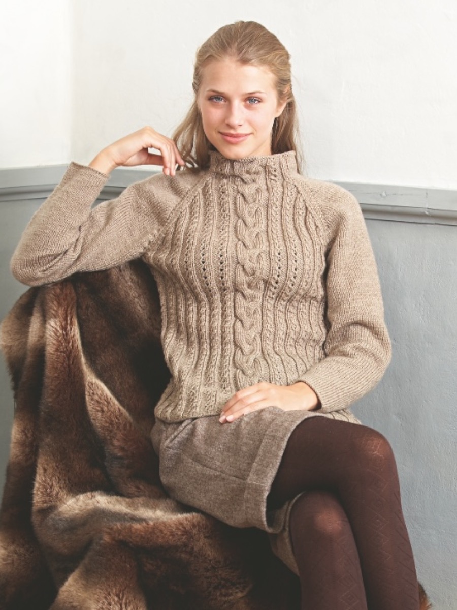Flätstickad tröja med slätstickade ärmar. Arbetet påbörjas vid bak- och framstycke där ett flätmönster i tre delar skapar strukturen. Raglanminskningar formar sedan oket. Ärmarna stickas separat i slätstickning med ökningar för vidd innan även de raglanminskas. Avslutningsvis monteras delarna genom att sy ihop raglan-, sido- och ärmsommar.