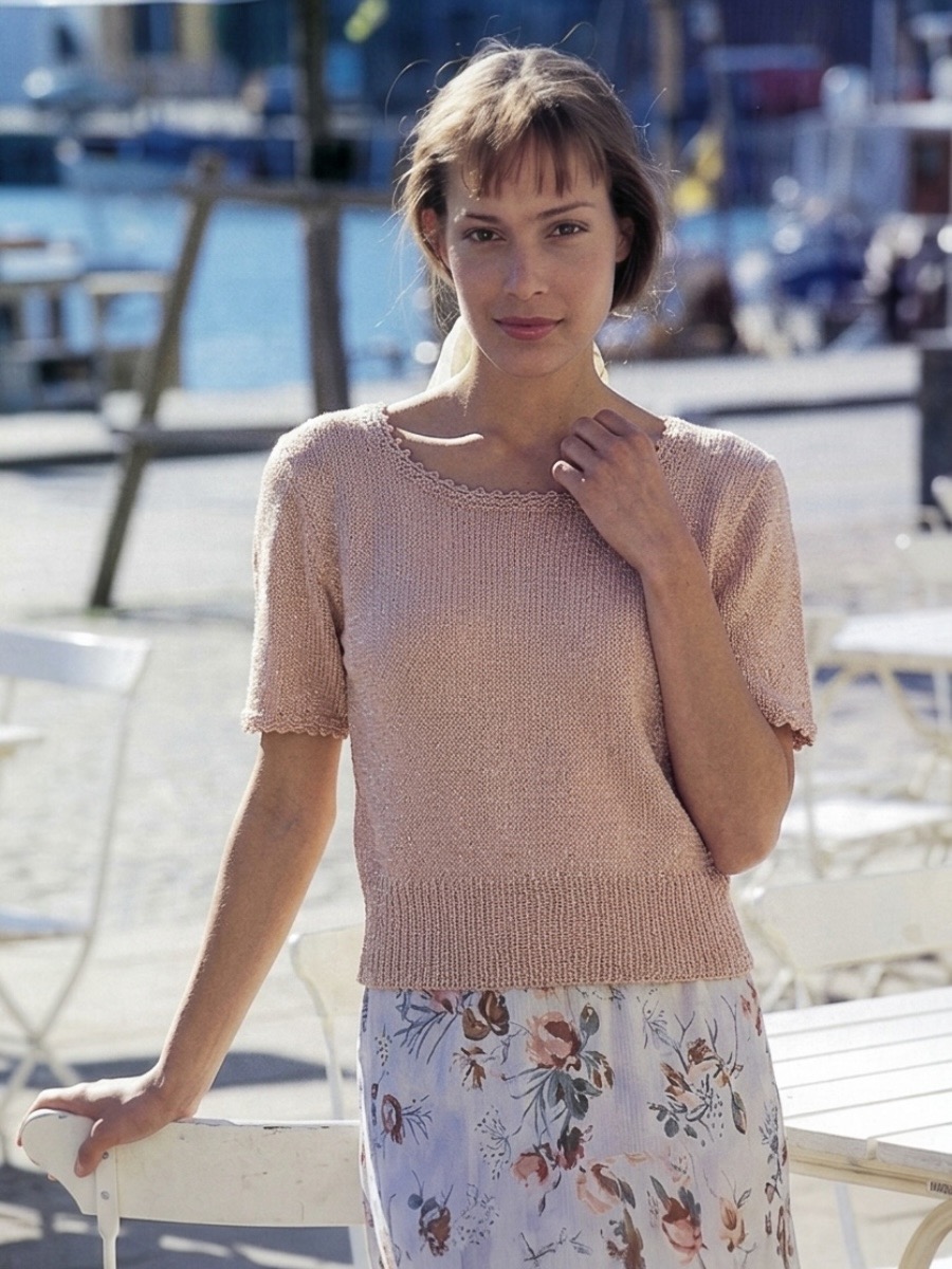 Jumpern stickas i slätstickning med lätt formade ärmar och rund hals. Bakstycke och framstycke stickas separat nerifrån och upp, med minskningar för ärmhål och hals. Ärmarna stickas för sig och sys fast. Halskanten stickas runt med resår.