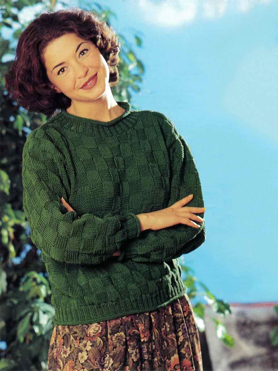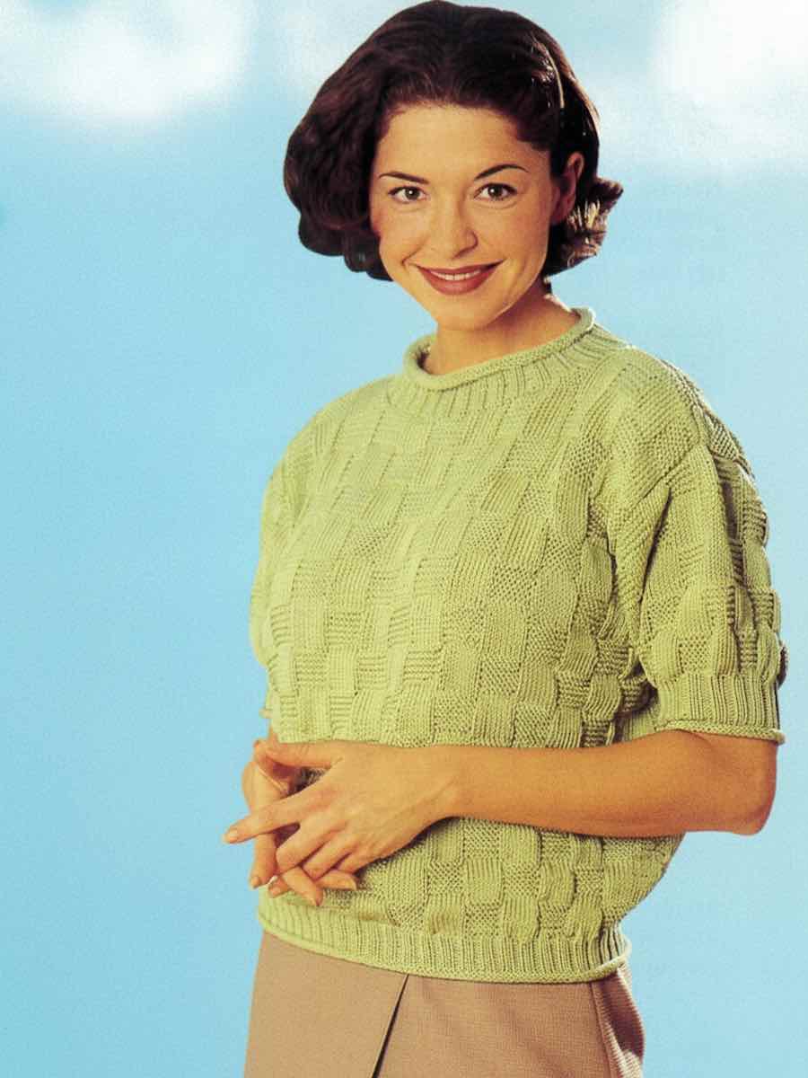 Sticka jumperns fram- och bakstycken enligt diagram med formning för ärmar och hals. Välj kort eller lång ärm och sticka separat. Montera delarna, plocka upp maskor för halskant och sticka resår.