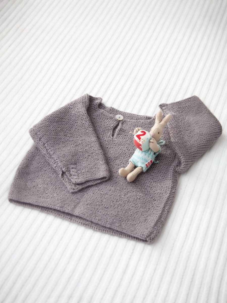 Klassisk rätstickad barntröja. Designen har en praktisk knappöppning vid halsen som gör plagget både funktionellt och tidlöst.
