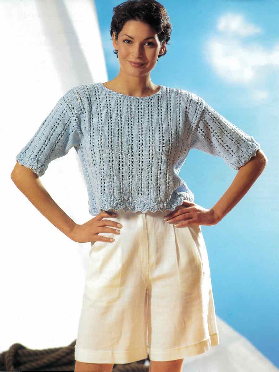 Jumpern stickas med fram- och bakstycke med diagram och avmaskningar för hals och ärmhål. Ärmar stickas separat och sys i. Halskant plockas upp och stickas. Följ diagram A och B med räta och aviga maskor samt minskningar.