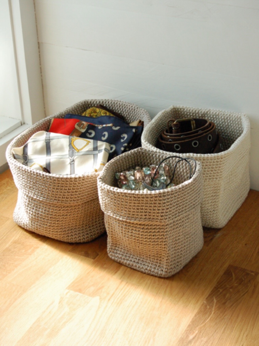 Liten fyrkantig korg: 3 nystan. (fg 2014 lin) alla korgar i 3-dubbel Bianca