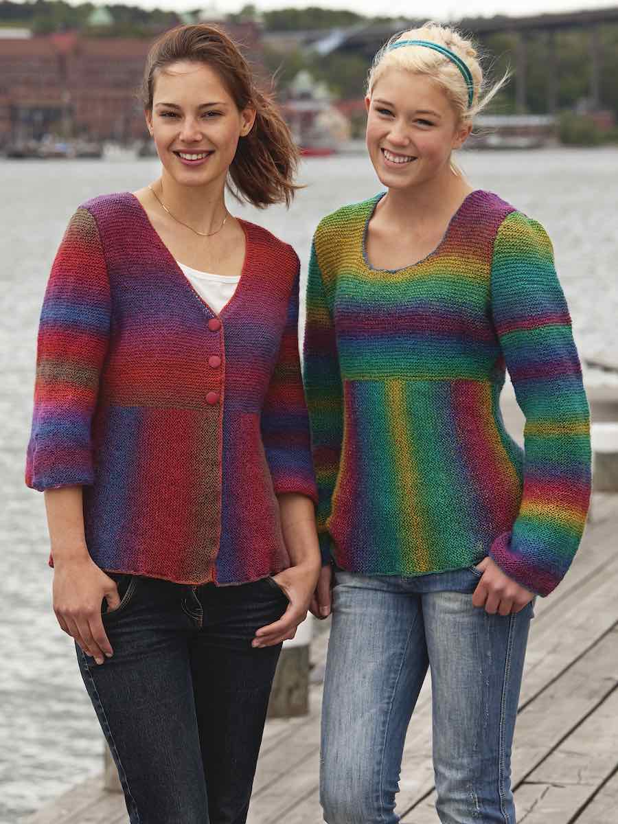 Koftan och jumpern stickas i rätstickning. Nederdelarna stickas från sida till sida, överdelarna plockas upp och formas med ökningar, minskningar och avmaskningar.