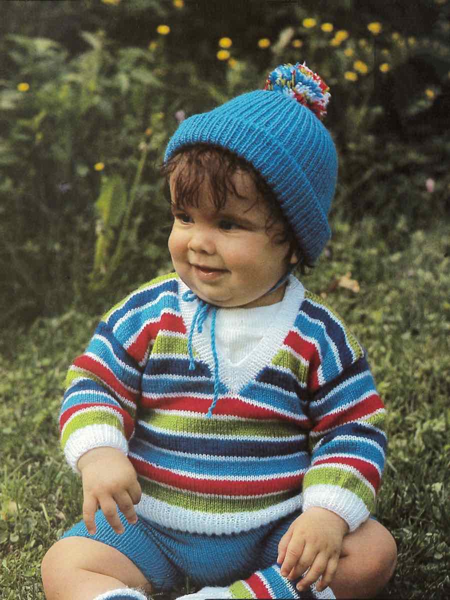 Sticka jumper, byxor, mössa och sockor själv – mjuka, varma plagg för de små. Skapa ett helt set med enkla stickmönster!
