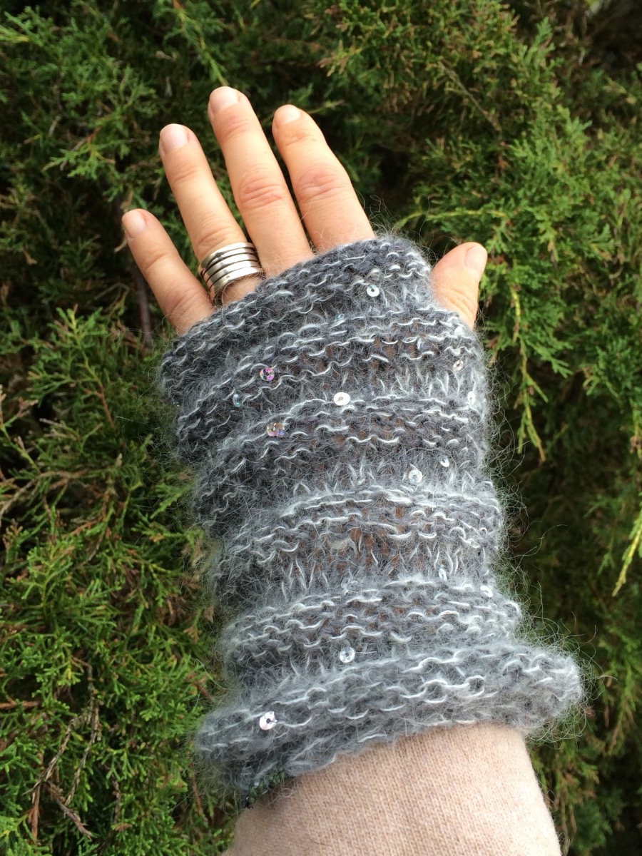M&K Kid Mohair (76% Kid Mohair, 24% Polyamid) och Fame Trend Paljett (55% Ull, 38% Akryl, 7% Paljett)