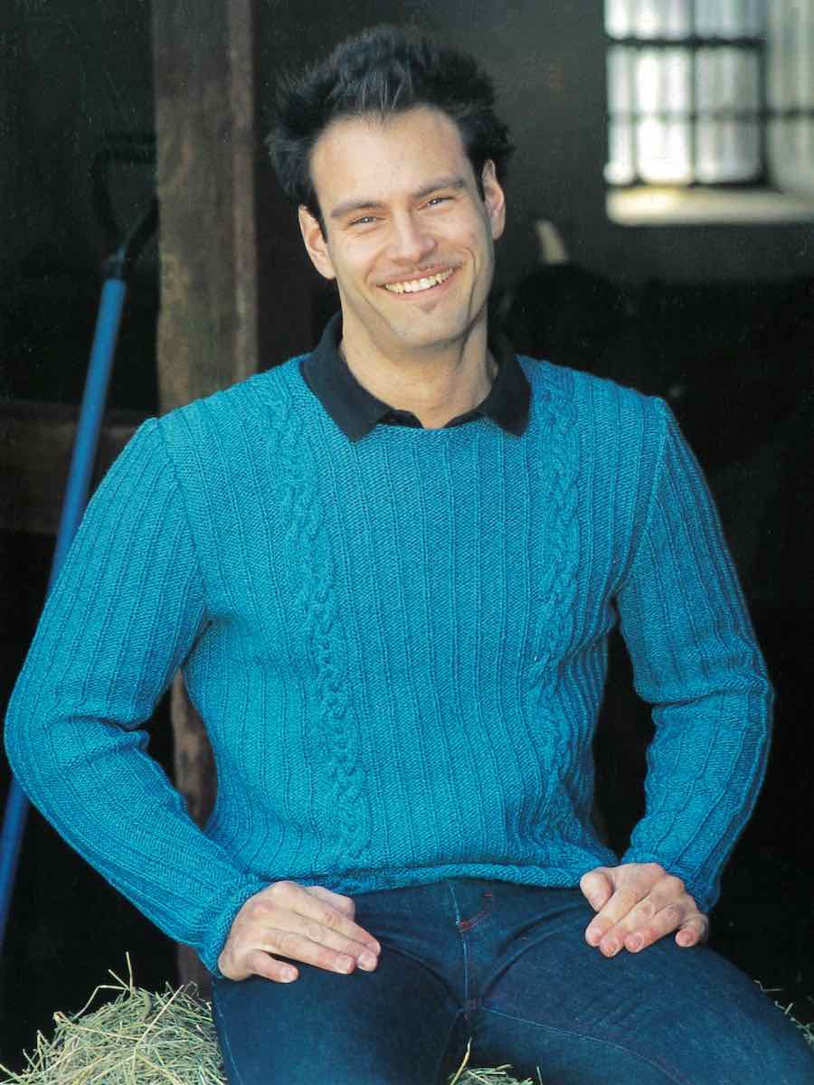 Tröjan är stickad nerifrån och upp i delar. Ribbstickning och flätor med fin struktur. Den har isydd ärm.