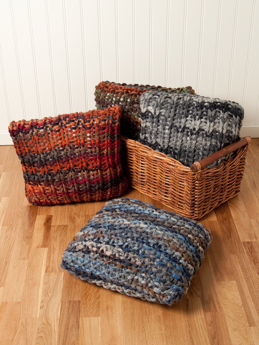Kuddarna är stickade i FAME TREND FINGER Storlek ca: 40 x 40 cm Garnåtgång: Kudde 1: 2 härvor (fg 664 svart-grå, 648 brun-orange-röd)Kudde 2: 2 härvor (fg 645 grå-blå-beige, 647 beige-orange-grön) i Fame Trend Finger Stickor: NDLWRX 25 mmTillbehör: Innerkudde ca 40 x 40 cm
