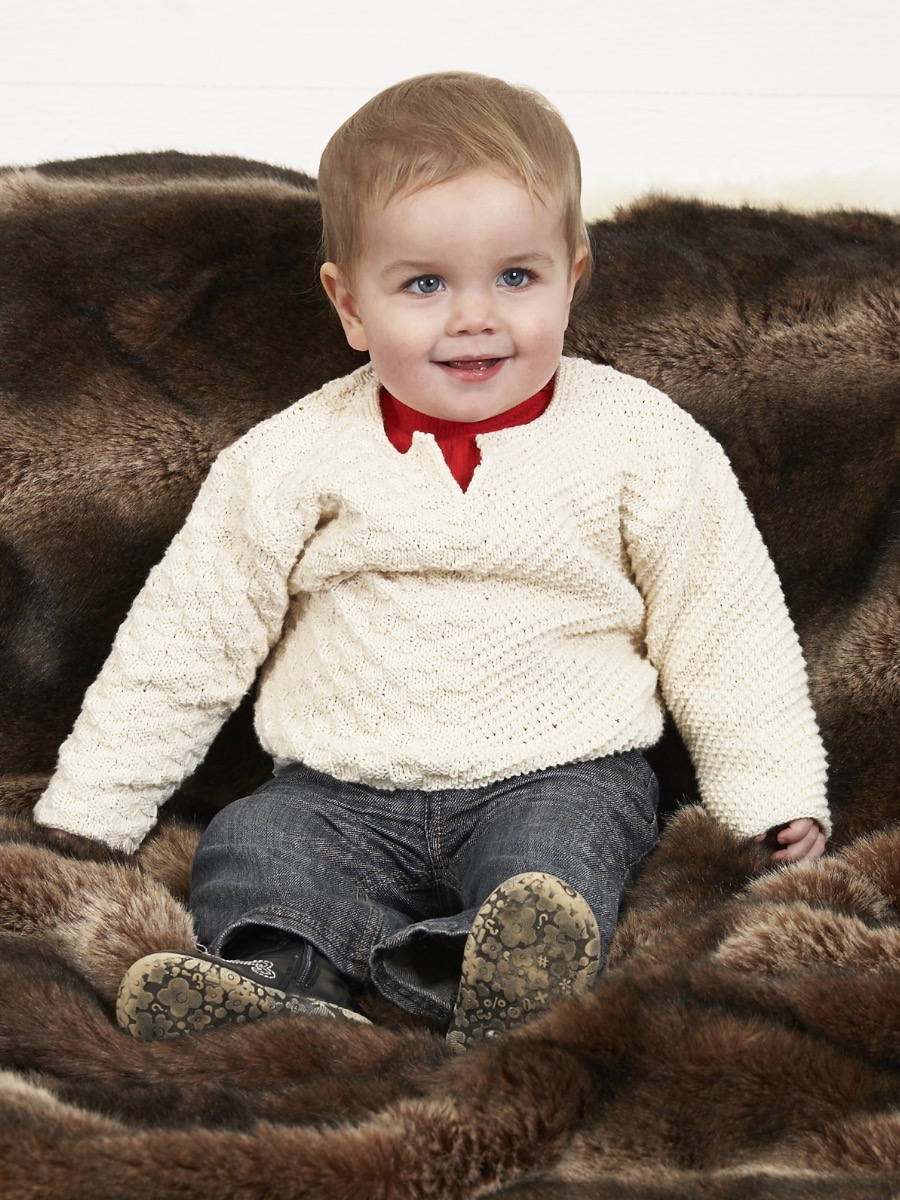 Sticka en tidlös barntunika. Arbetet delas upp i bakstycke, framstycke och ärmar som stickas på stickor 3 mm. Genom att varva räta och aviga maskor skapar du en snygg struktur med vertikala ränder längs sidorna. Du formar plagget med enkla intagningar för ärmhål och halsringning. Avsluta med att plocka upp maskor för en fin halskant i resår och virka smidiga knapphålsöglor vid axeln för enkel påklädning.