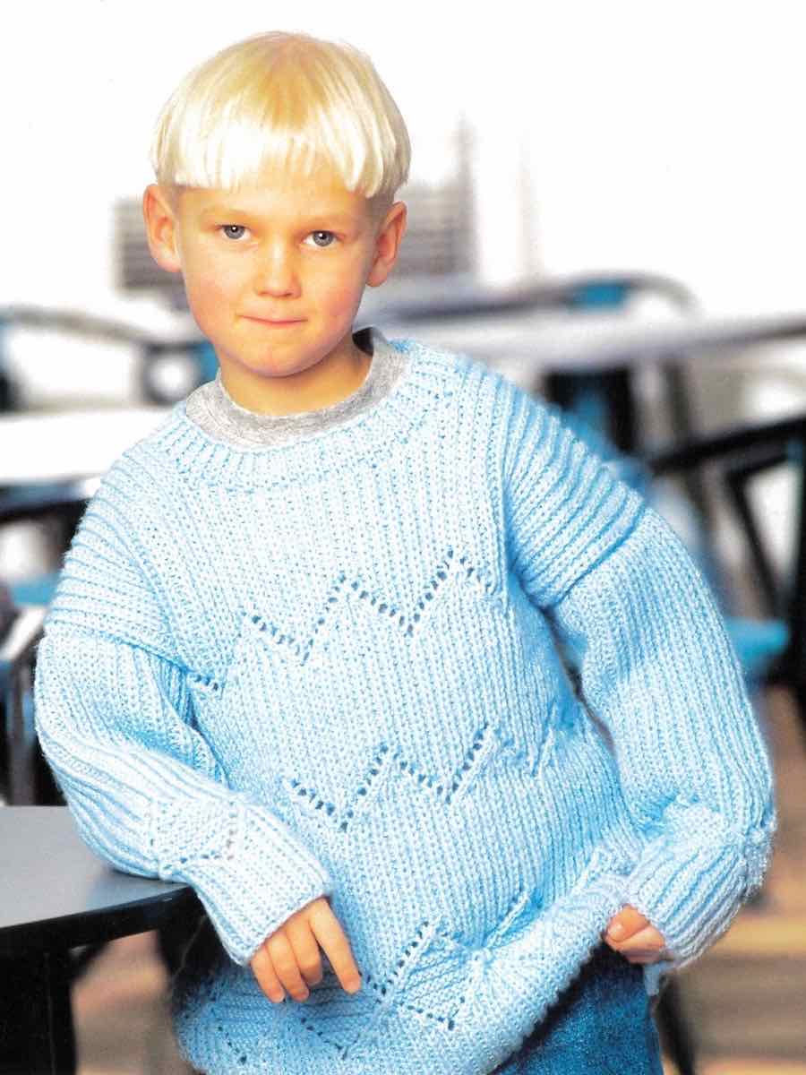 Tröjan är stickad på traditionellt sätt i delar. Den är stickad i patent och mönsterbård.