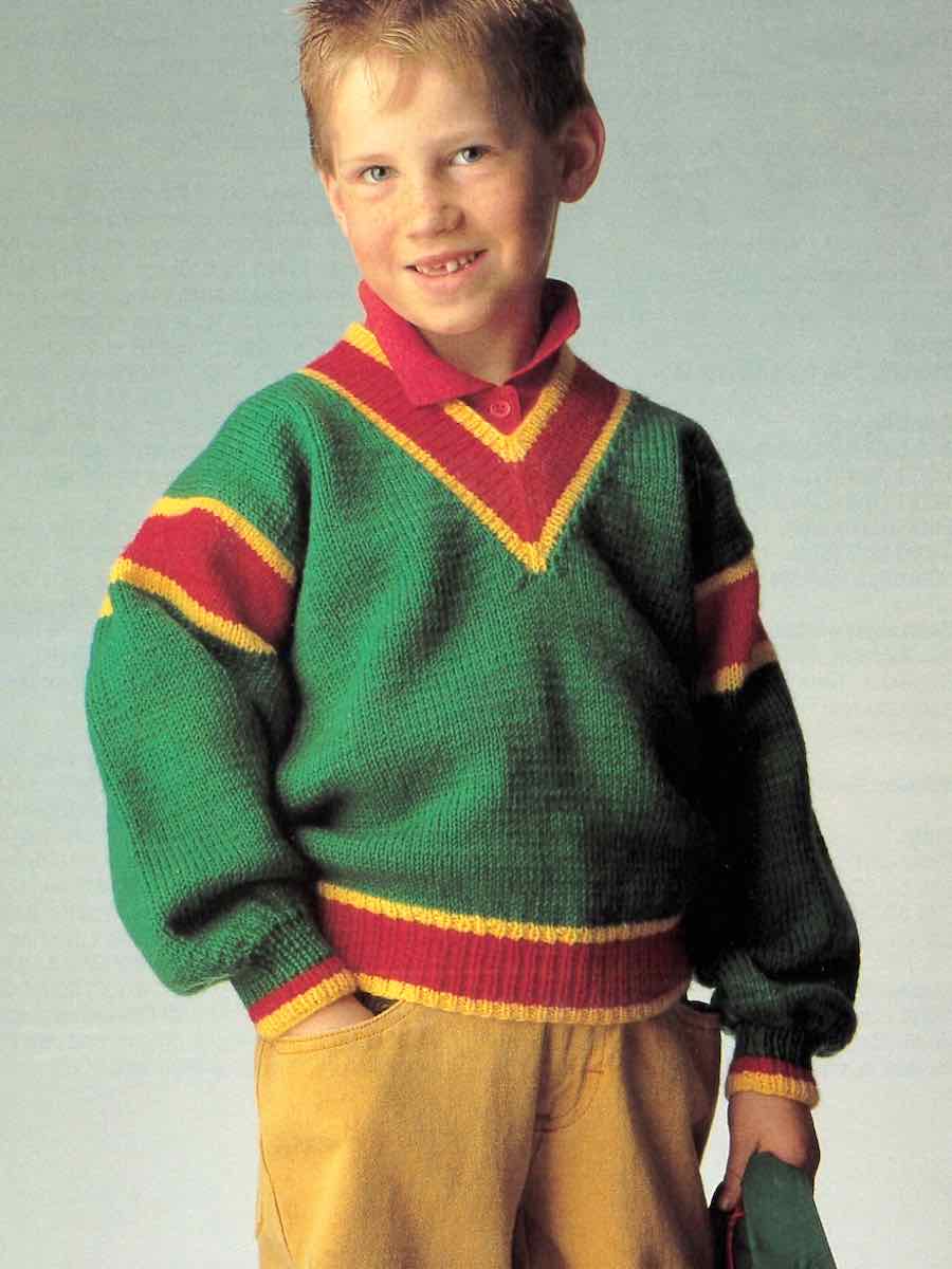 Tröjan stickas i delar med resår och slätstickning. Bak- och framstycke formas med ökningar och avmaskningar, ärmar stickas separat och sys på.