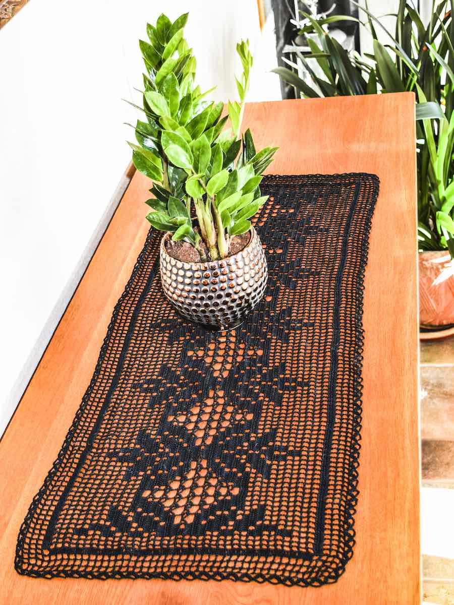 Virka en vacker löpare i merceriserad bomull. Arbetet  virkas enligt diagram. Avslutas med dekorativ kant.