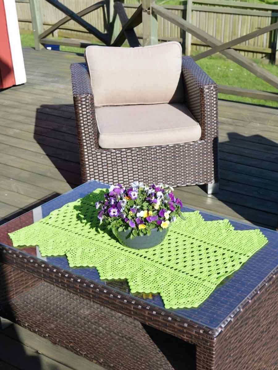 Virka löparen genom att följa ett diagram eller en skriven beskrivning där maskor byggs upp steg för steg. Du skapar strukturen genom att upprepa maskkombinationer och rapporter, och formar kanter genom ökningar eller minskningar.